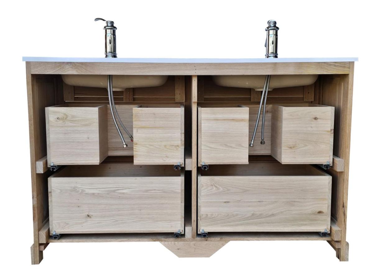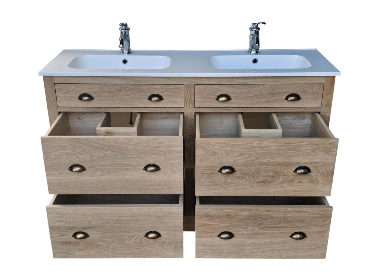 Meuble de Salle de Bain Cardiff  en pin massif  ( bois des landes 1er choix sans nœuds )  de Style Shaker Cottage  comportant 4 Tiroirs et 2 Faux Tiroirs .