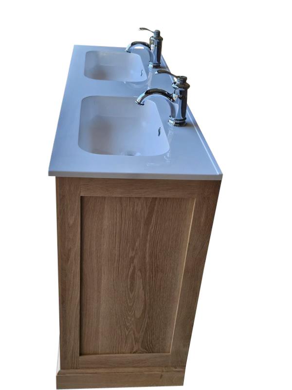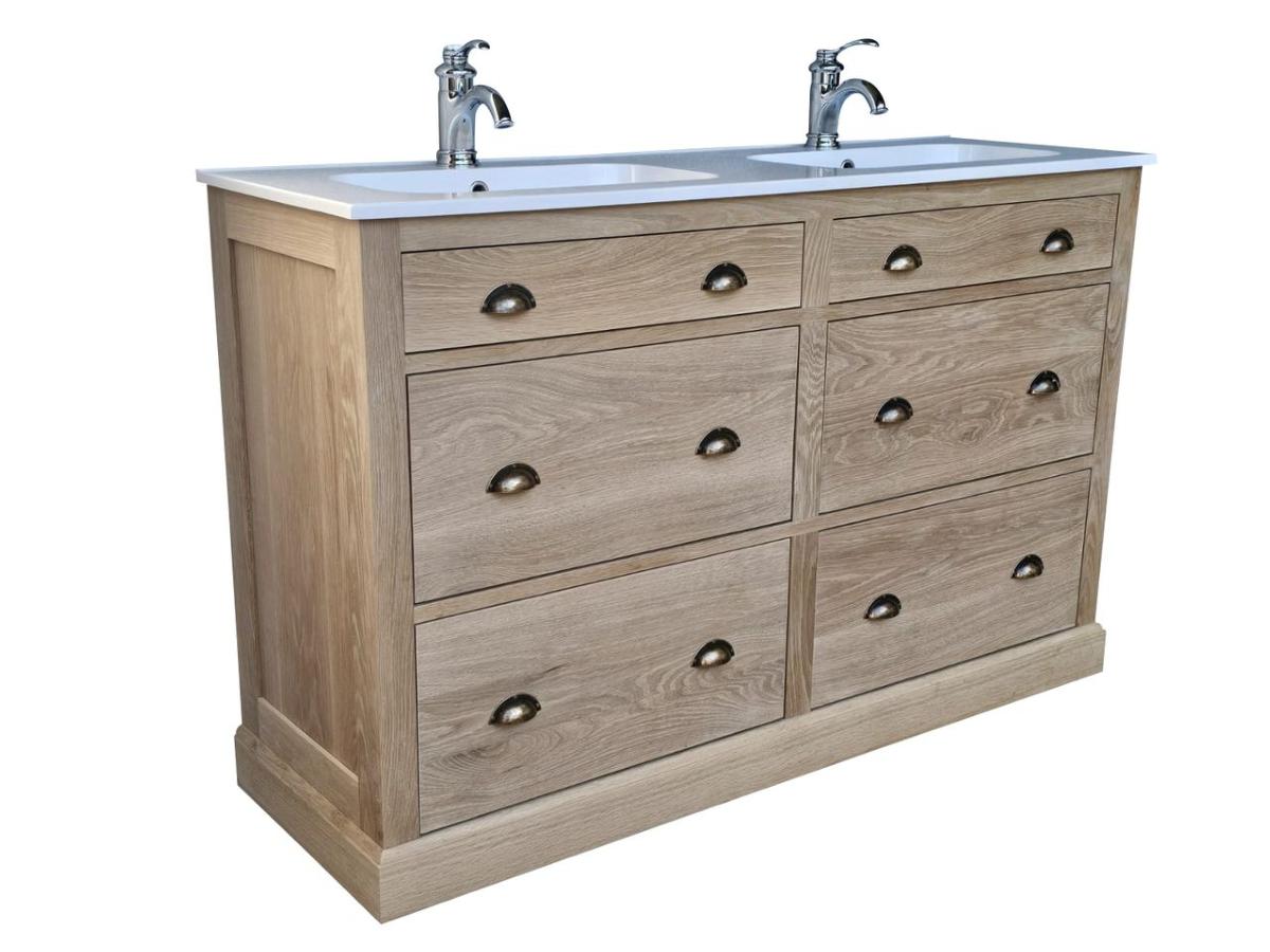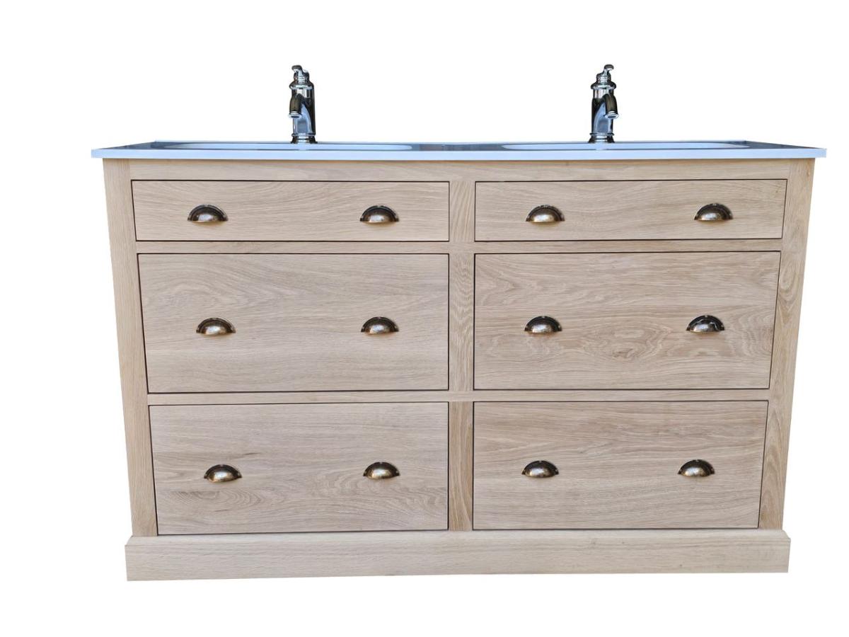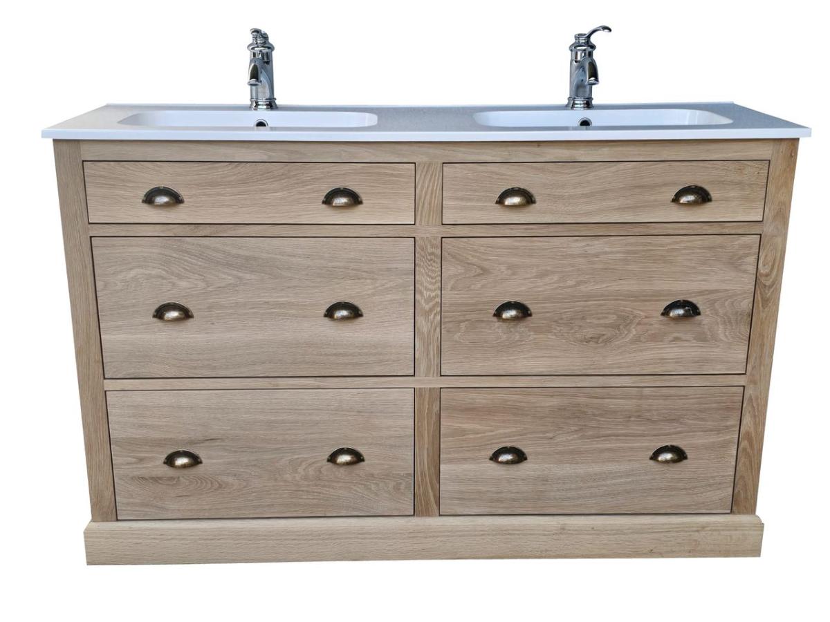 Meuble de Salle de Bain  en Chêne Massif Double Vasque  Cardiff comportant 4 tiroirs et 2 Faux tiroirs .